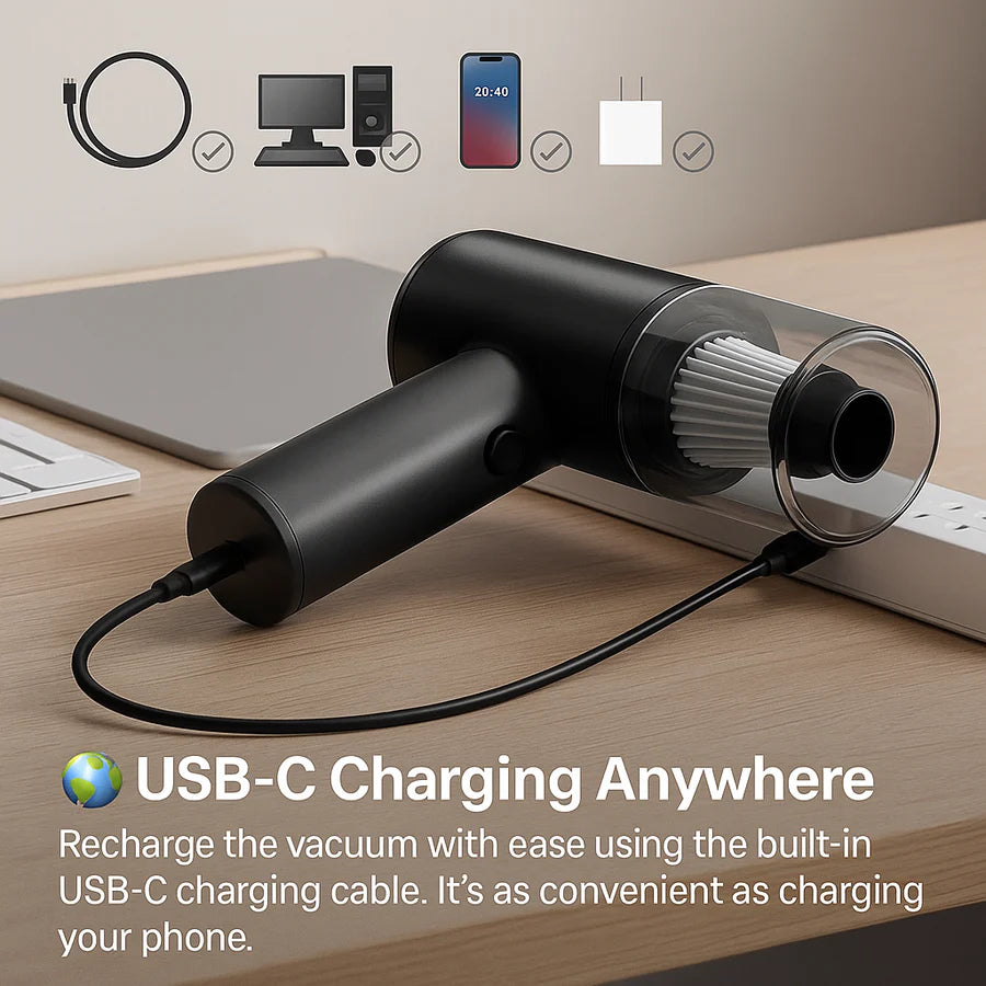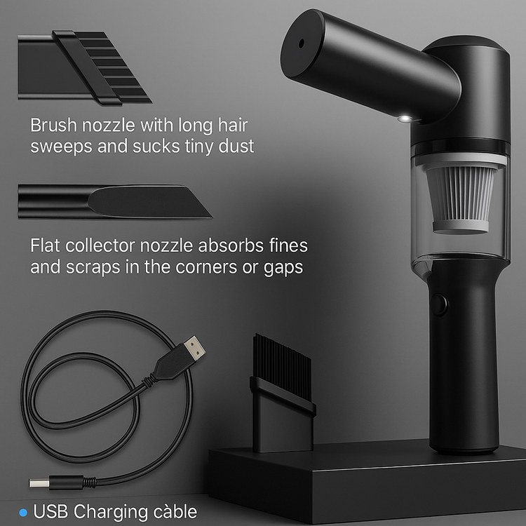 💨 Strong Suction Power: Easily picks up dirt, hair, crumbs, and more with high-speed motor technology.